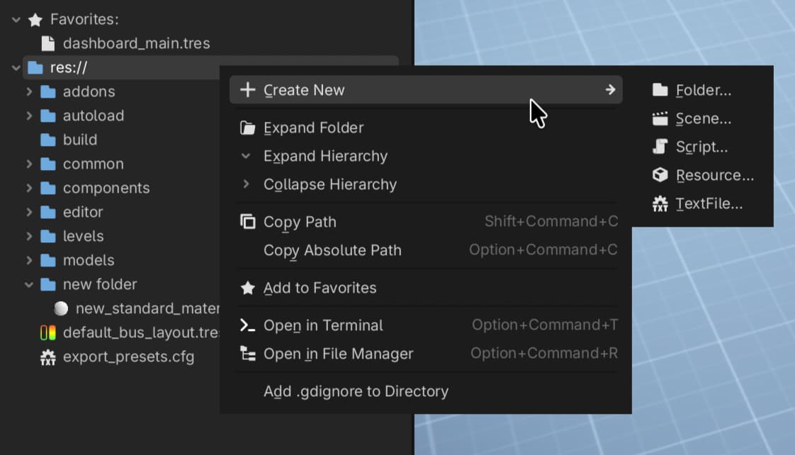 Godot doesn’t have nearly as many menus (natively at least), but being able to press keys in the existing ones can still speed up quite a few operations, which is why I made an addon to add this feature.