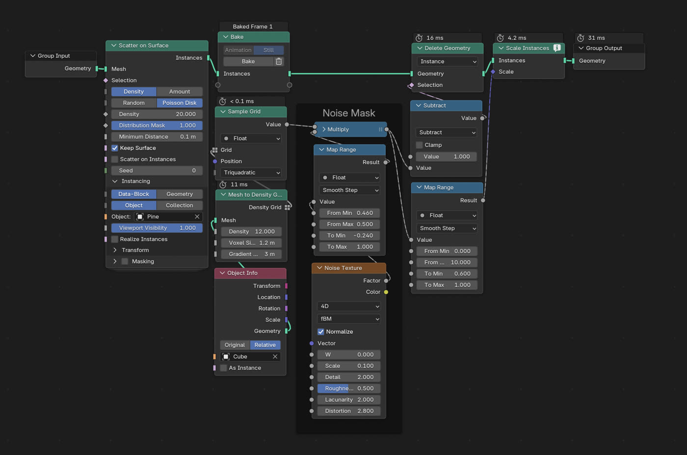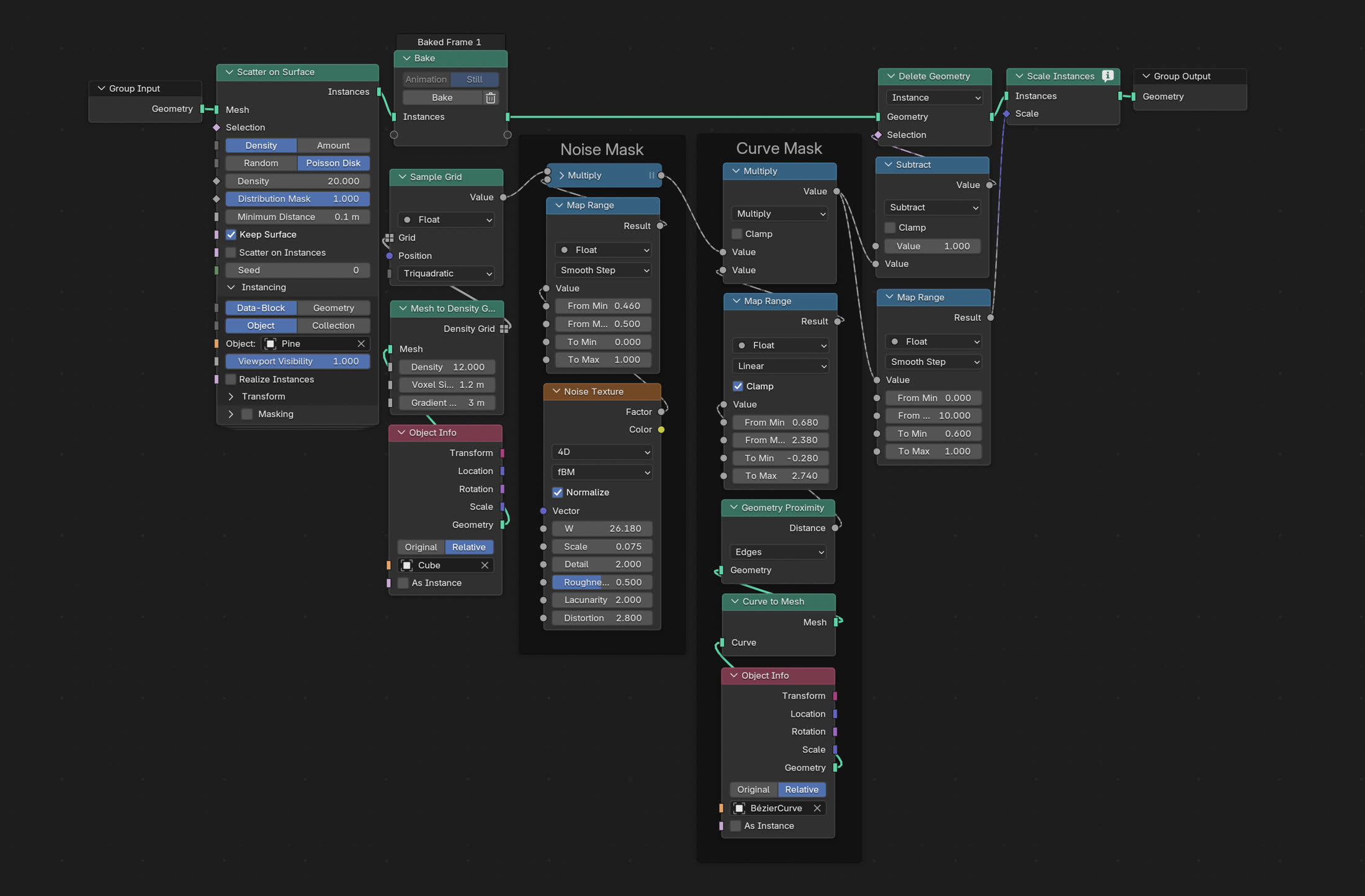 And here’s a cooler version that also scales instances near the edges and allows baking instance distribution before culling and scaling (we’ll get into all that in a sec):